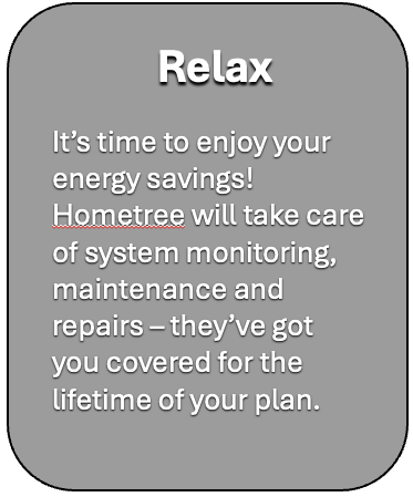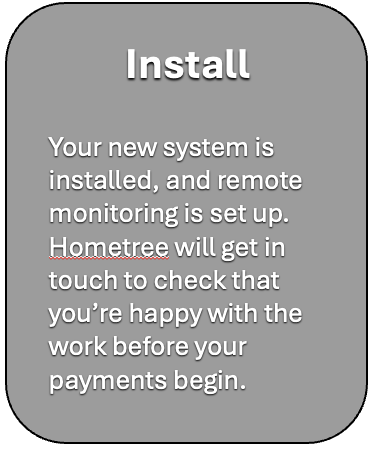 Monthly payments are subject to an annual increase of 2.5% to reflect the increasing cost of maintaining the system over time. Hometree will always use manufacturer approved parts and pay fair market rates for skilled labour.